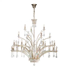 Mantra M3850FG Tiffany Pendant 2 Tier 12+12 Light E14+G9, French Gold With White Shades & Clear Crystal