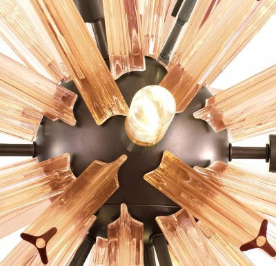 The Rigel Range presents intriguing glass shaped fittings that have been moulded to give a three dimensional triquetra. The glass rods on this range enhances the overall intriguing optical effect of the fittings and these can be further elevated by using modern LED light bulbs. The fixtures are available in a variety of finishes and sizes from semi-flush fittings to 32 light pendants. Each frame can be chosen with either a brown oxide, polished nickel or matt black frame with either clear, champagne gold or smoke glass.