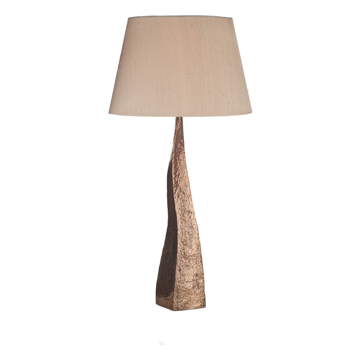 A quirky hammered table lamp base in a copper finish. Base only, shade can be purchased separately. Operated by a push bar switch.