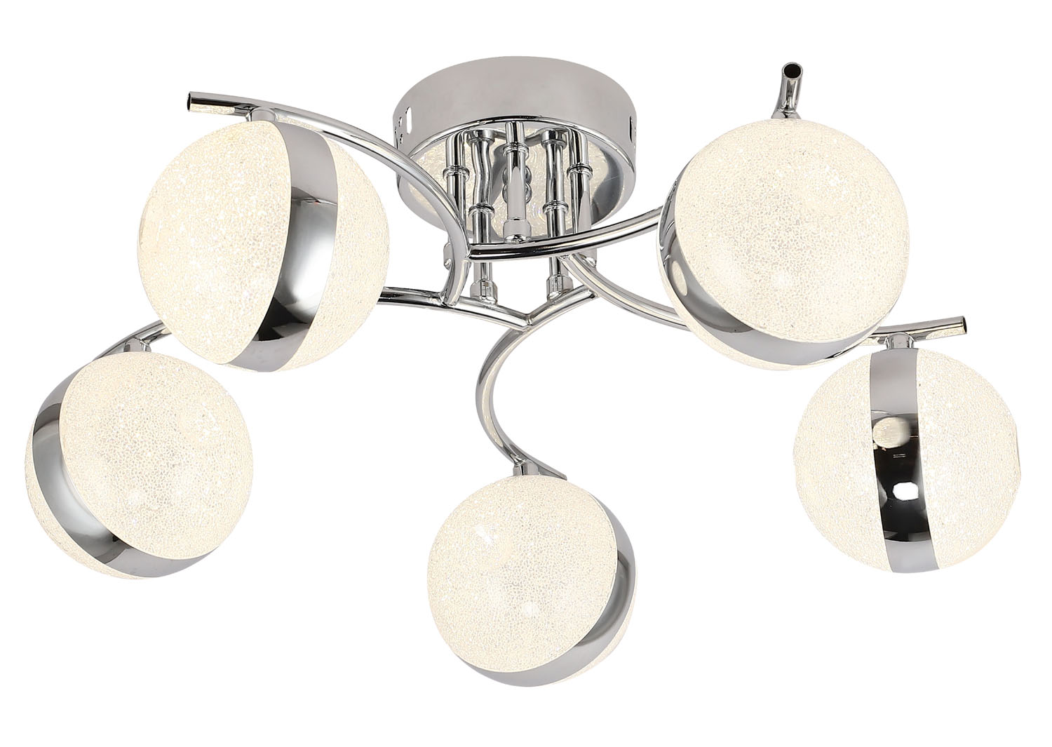 Bobbi is a delight little range comprising a 3 or 5 light semi flush ceiling fitting. The gently curved arms finish with an internally illumintated Crystalline orb with polished chrome belt. Crystalline is crushed quartz crystal which lines the internal surface of clear diffuers, when sparkle beautifully when illuminated. Both these ceiling fittings are suitable for low ceilings. You are currently viewing the Bobbi 5 Light LED Semi Flush Polished Chrome & Crystalline