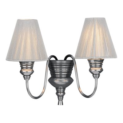 A traditional style double wall bracket in a pewter finish, complete with silk string shades in silver grey. Supplied with an extra 50cm of cable, extra chain available on request. Also available in this range are 5, 9 and 15 light pendants.