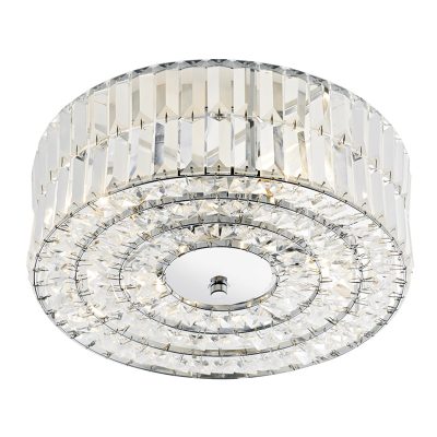 A stunning 4 light semi flush fitting in a polished chrome finish, featuring faceted crystal glass pieces in a chrome frame. Ideal in rooms where ceiling height is limited.