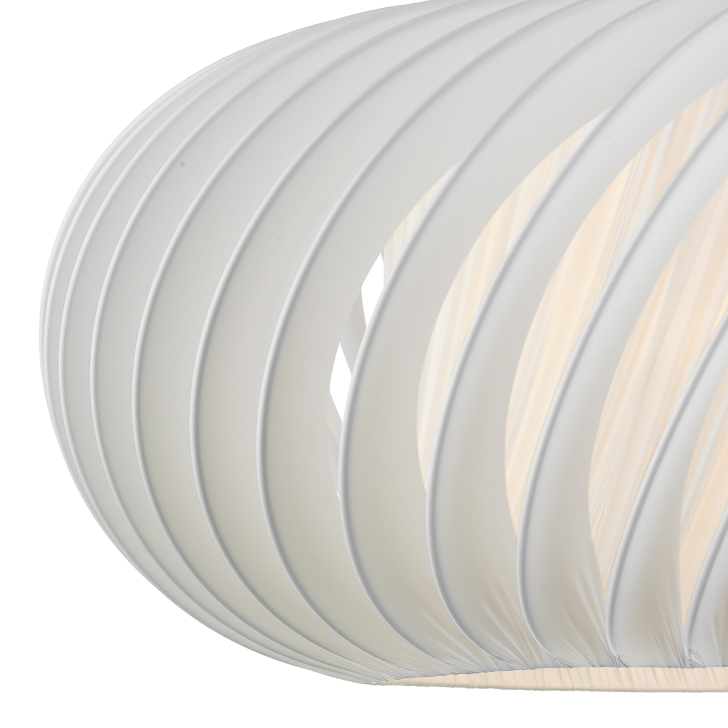 A simple easy fit pendant in white with slanting detail. Can be fitted over any existing lamp holder 29-42mm. Also available in a smaller size.