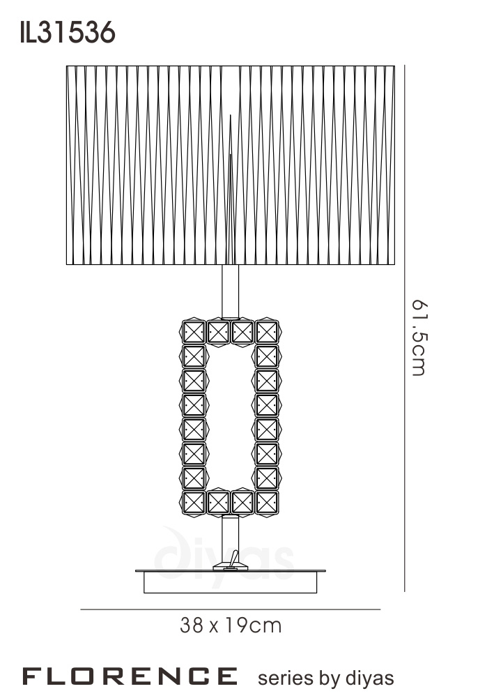 Florence Rect Table Lamp With White Shade Chrome/Crystal