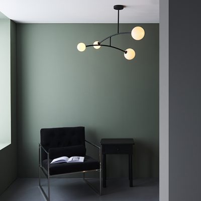 The asymmetric 4 light pendant creates a real illusion of balance, whilst the floor lamp has added interest with twin globes at either end of the arm.
