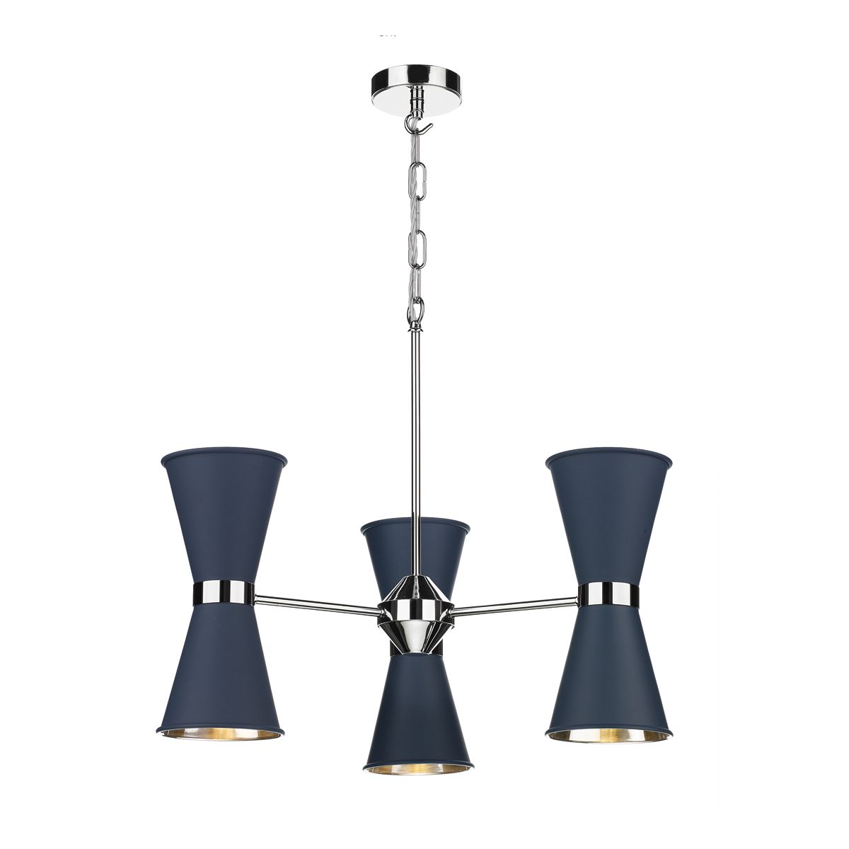 Hyde 6 Light Pendant Chrome With Smoke Blue Metal Shades
