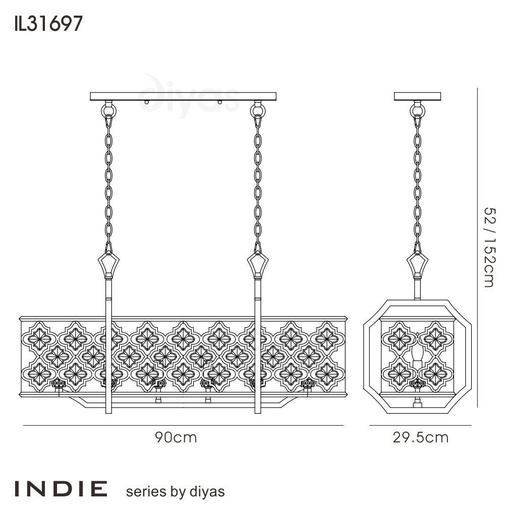 Indie Pendant 6 Light Rect Mocha/Teak Plated Crystal