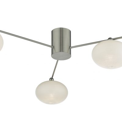 A 3 light semi flush fitting in a satin nickel finish. Three delicate satin nickel arms each hold a textured opal glass shade. Ideal in rooms where ceiling height is limited. Also available as a larger 5 light semi flush.