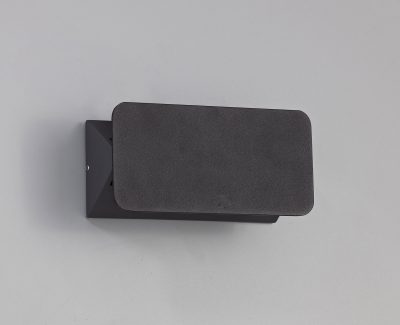 Josh uses simple uniform shapes structured in a unique way to create a new mode of projecting light. A 3D long pyramid is customised to form the backplate, positioning the integral LED’s along the two faces of the shape nearest to the point. The rectangular metal plate with curved corners is then centrally fixed at the front of the fitting to shelter the light dispersion and throw the illumination emitted in opposite directions on either side of the wall lamp. Available in two colour finishes with an IP54 rating the simplistic yet creative design is suitable for indoor and outdoor settings.