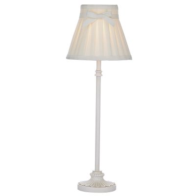 A sweet table lamp featuring a hand cast resin base. Comes complete with a linen pleated shade in cream. Operated by an in line rocker switch.