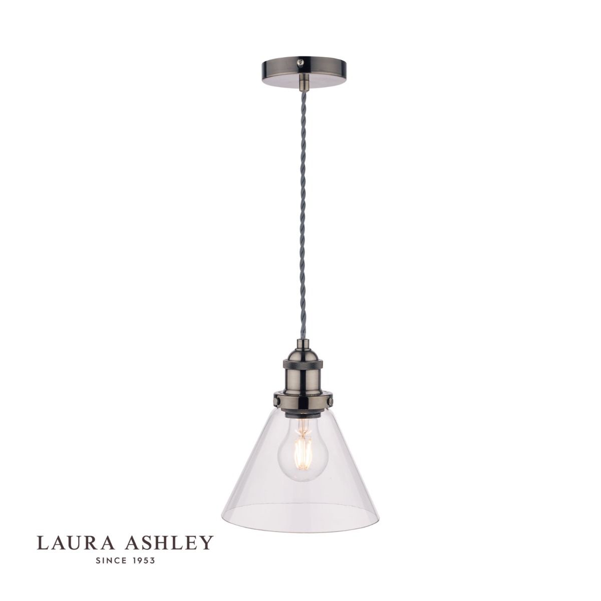 Laura Ashley’s Isaac single light pendant fits effortlessly into kitchens and dens. Bold lines and angular shapes lend a sophisticated, contemporary touch that looks fantastic against bare brickwork. This contemporary hanging ceiling light boasts industrial appeal with a velvety brushed chrome finish and cone-shaped clear glass shade.