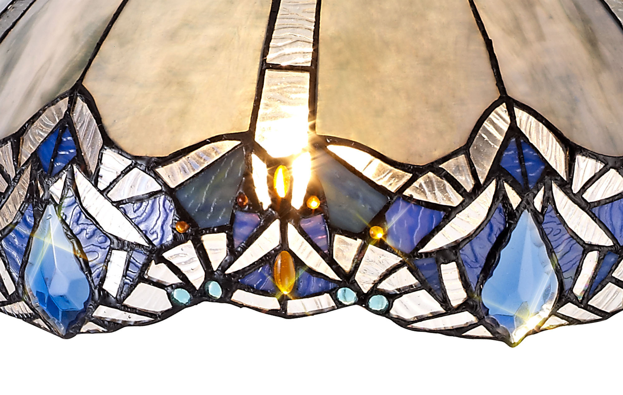 A1 – Linton, Tiffany 40cm Shade Only Suitable For Pendant/Ceiling/Table Lamp, Blue/Clear Crystal, 1yr Warranty