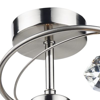 A 4 light semi flush fitting in a satin chrome finish. Curved arms and faceted crystal glass shades create this contemporary fitting. Ideal in rooms where ceiling height is limited. Also available in polished chrome, black chrome and antique brass.