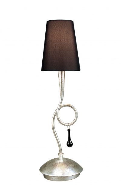 Mantra M0535 Paola Table Lamp 1 Light E14, Silver Painted With Black Shade & Black Glass Droplets