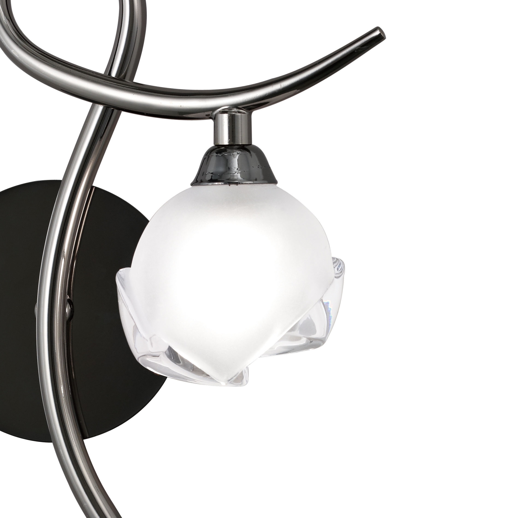 The Fragma collection combines exquisite frames, bows and impossible loops, with an original-cut sphere glass shade incorporating acid-etched reserves. This attractive and interesting range demonstrates how an artistic creation can become a reality. The fluid metal work comes to a perfect point as though it is the end of a signature. The range is available in polished chrome and black chrome and also includes a left and right handed wall lamp for that extra versatility.