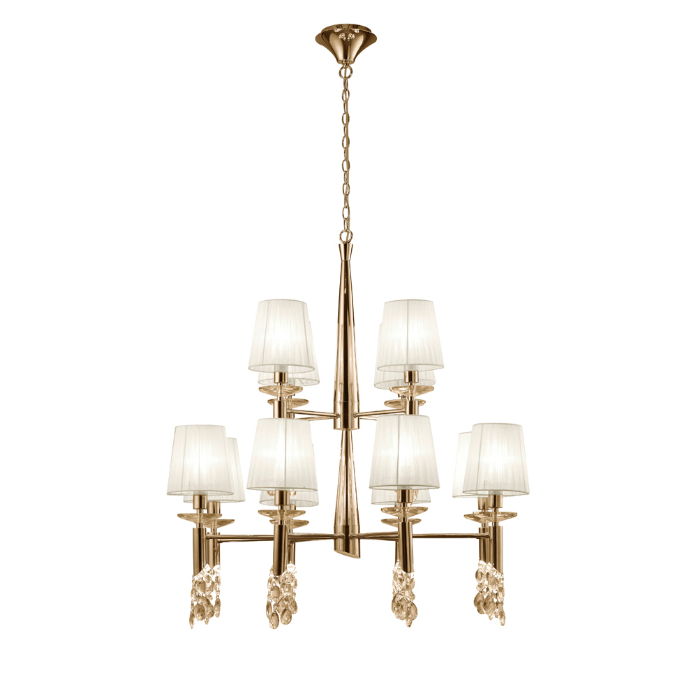 Mantra M3850FG Tiffany Pendant 2 Tier 12+12 Light E14+G9, French Gold With White Shades & Clear Crystal