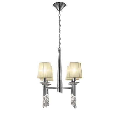 Mantra M3852 Tiffany Pendant 4+4 Light E14+G9, Polished Chrome With Cream Shades & Clear Crystal