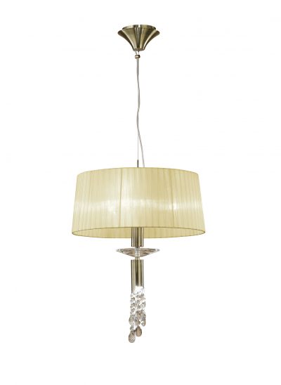 Mantra M3878 Tiffany Pendant 3+1 Light E27+G9, Antique Brass With Cream Shade & Clear Crystal