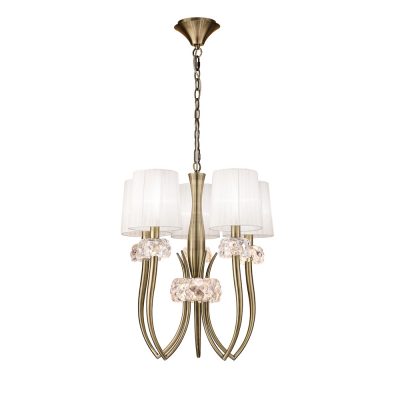 Mantra M4632AB Loewe Slim Pendant 5 Light E14, Antique Brass With White Shades
