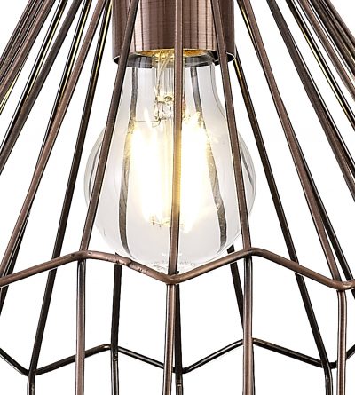 With geometric shapes and form, the Metrica range includes two pendants finished in a stunning antique copper, ideal for use within a traditional atmosphere or even to bring a touch of contemporary ambience to a modern space. The wired format of the metalwork allows an open uninhibited dispersal of light from the E27 lampholder. Both lights take a maximum 60W ensuring an extensive amount of illumination is achievable.