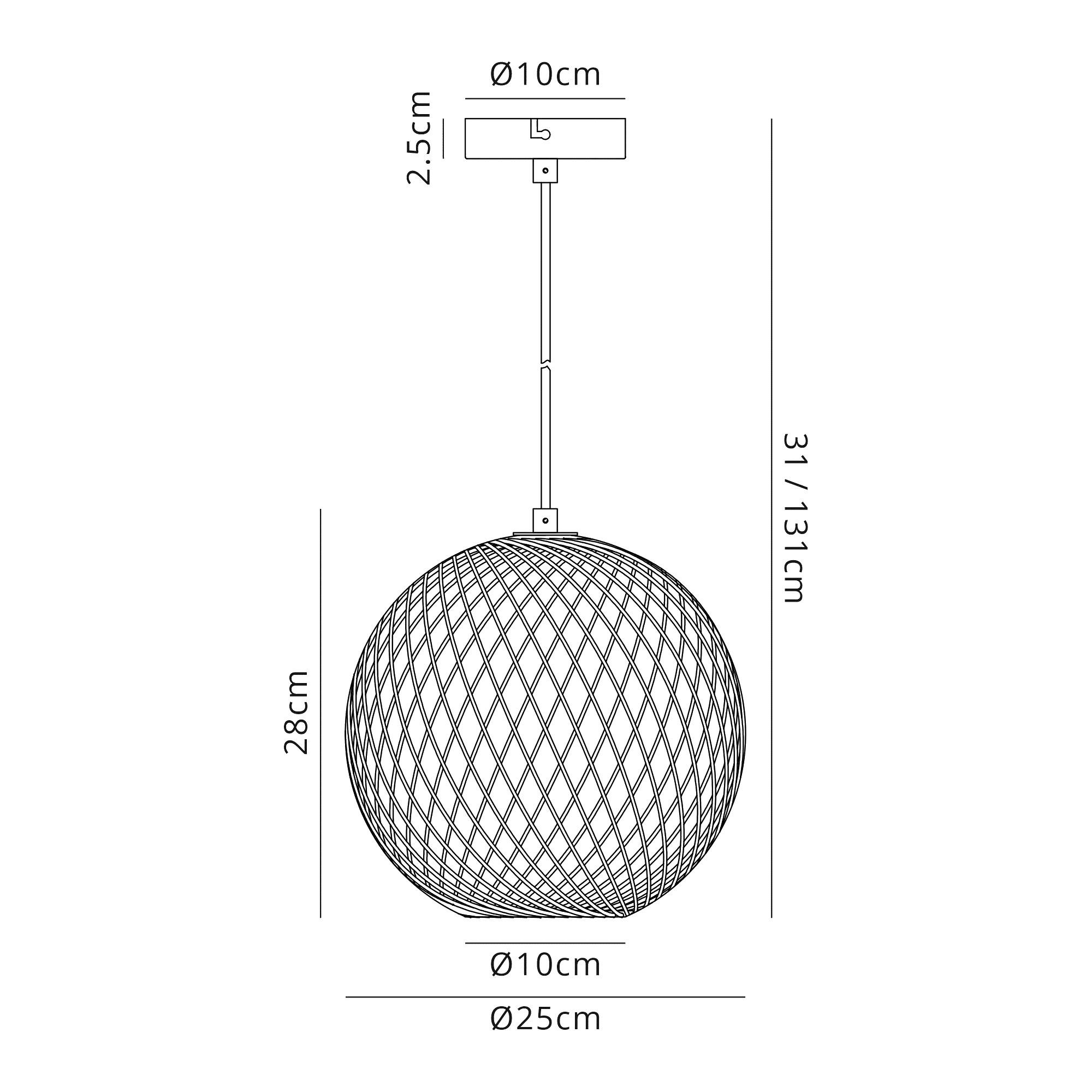 The Millie range hosts a trio of traditional pendants with distinctly varied shapes. Their composition of hollow diamonds encircle the single E27 lampholder of each fitting. This structure is available as either an elliptical sphere, curved cylinder or sphere shape, to suit your personal preference. Millie can be used with various lamps to adapt each pendant to a different setting; a cool white LED lamp could be used for a more modern ambience or you could opt for a vintage LED lamp to create a rustic urban environment.