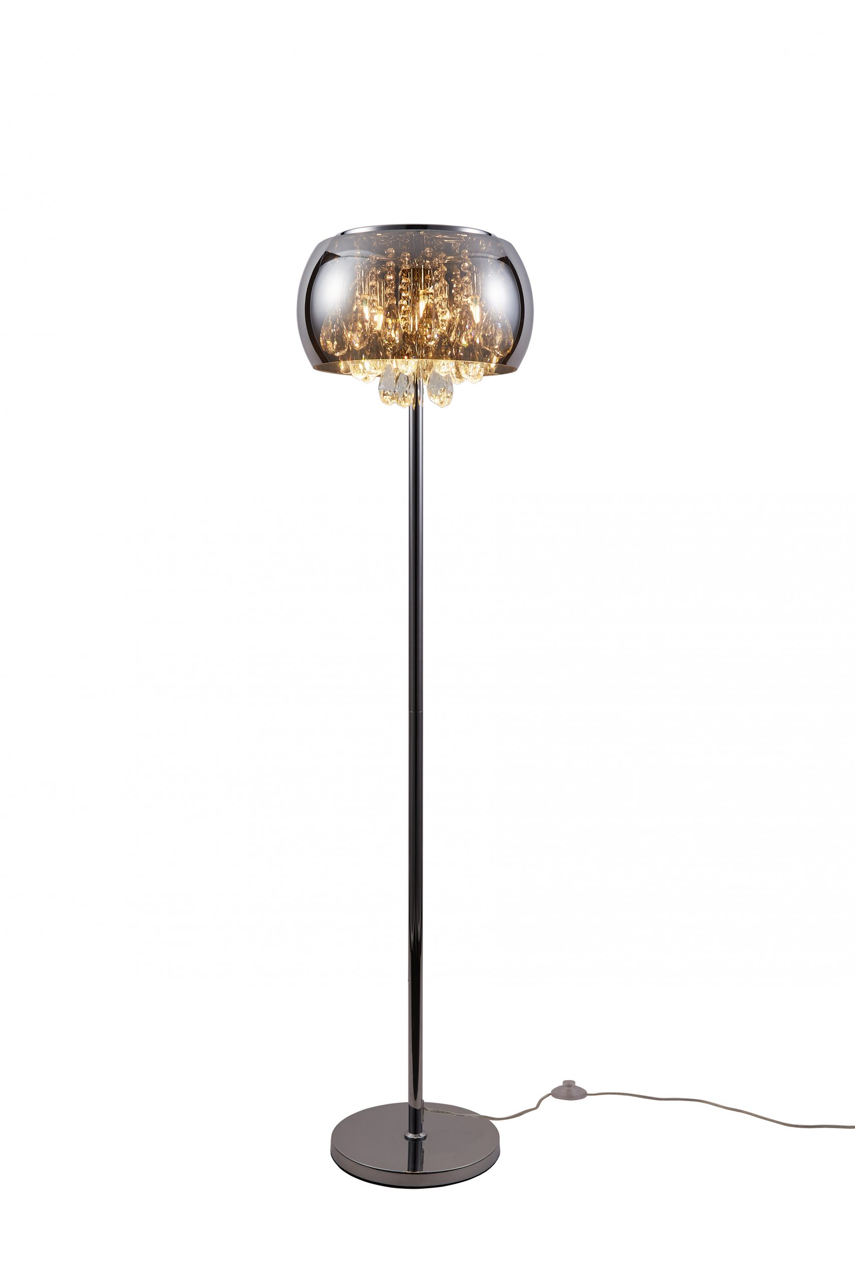 The Raven Collection is a modern 2022 fitting which features a stunning mouth blown smoked and mirrored glass shade which surrounds tiers of large clear or smoked sweetcorn crystal droppers. The range comprises a 500 mm or 400 mm diameter adjustable pendant or ceiling flush fitting and is complimented with a matching table and floor lamp.