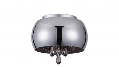 The Raven Collection is a modern 2022 fitting which features a stunning mouth blown smoked and mirrored glass shade which surrounds tiers of large clear or smoked sweetcorn crystal droppers. The range comprises a 500 mm or 400 mm diameter adjustable pendant or ceiling flush fitting and is complimented with a matching table and floor lamp.