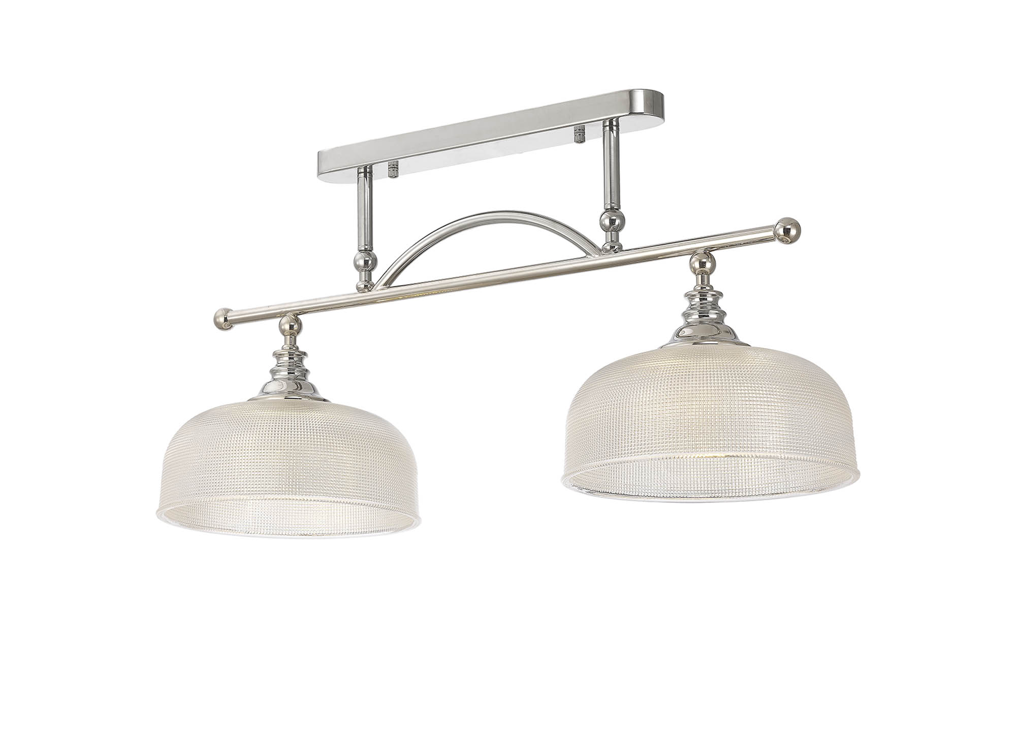 Bexley seizes the traditional concept and amplifies it with a modern angle to give a contemporary look. The textured prismatic glass surrounds whichever E27 bulb you select, giving it an impressive look when illuminated. Available in polished nickel, antique brass and satin nickel. This range is obtainable in a number of configurations with a lot of the fittings being dual mount, making it suitable for anywhere in the home.