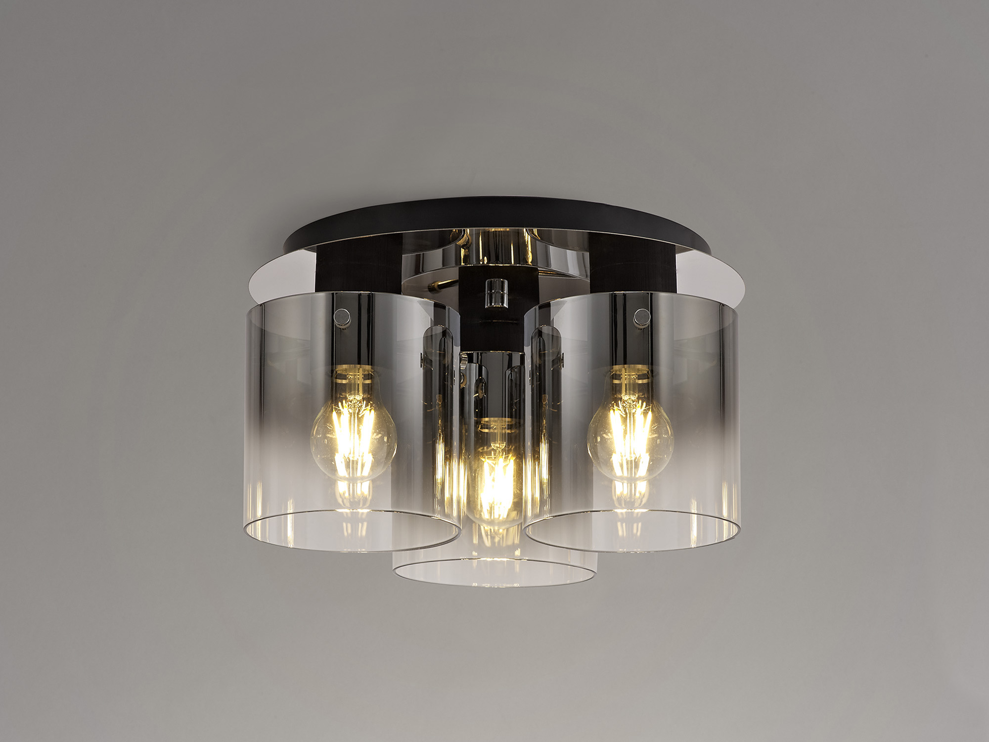 Manhattan capitalises on the intriguing ombré effect by applying the finish to substantial smoked to black glass cylinders which sit around the E27 lampholders. Available in brushed black aluminum and brushed mocha. The Manhattan range is available in a number of configurations, making it suitable for anywhere in the home.