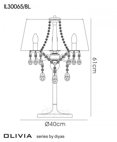 Olivia Table Lamp With Black Shade Antique Brass/Crystal