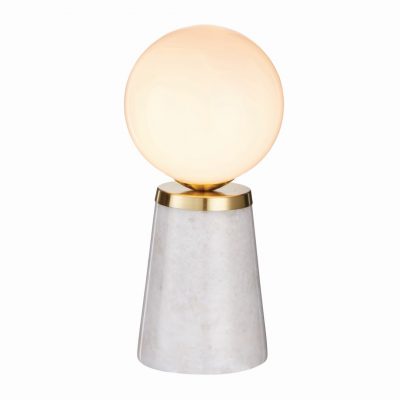 Create an ‘on-trend’ mid century feel with the Otto table light, gloss opal blown glass shades with brushed brass metalwork and gloss marble base.