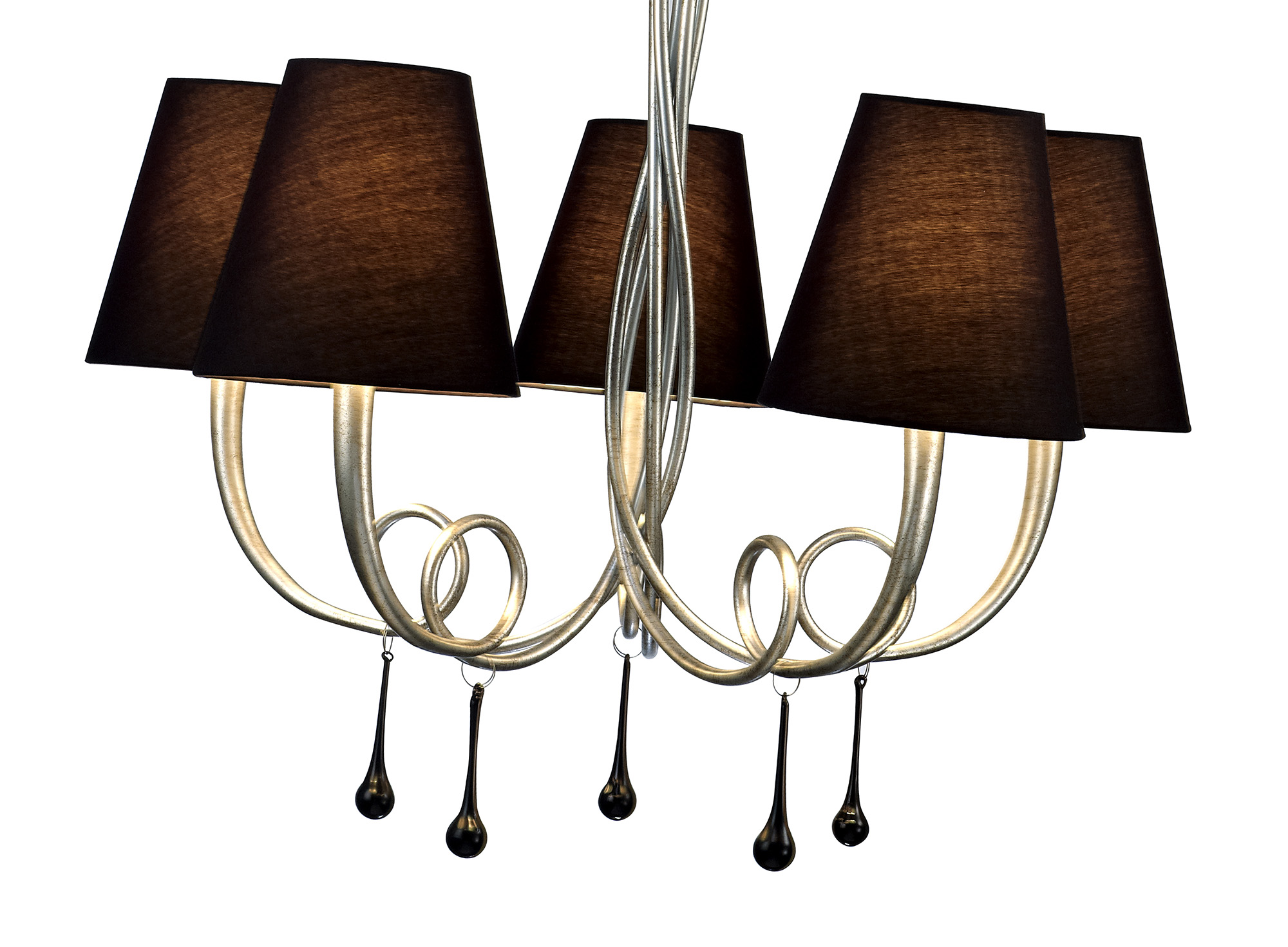 Mantra M6208 Paola Pendant 70cm Round, 5 x E14 (Max 40W), Silver Painting, Black Shades