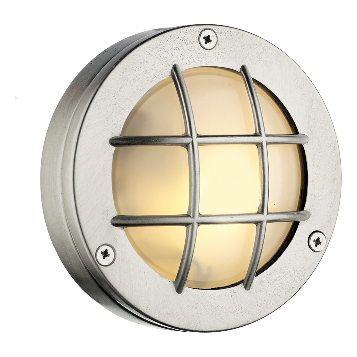 An industrial style wall light in a light nickel finish. Can be mounted on the wall or on the ceiling. IP44 rated so suitable for use indoor and outdoor. Also available in an oxidised finish.