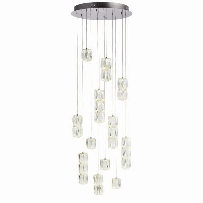 Beautiful high quality faceted clear glass crystals are effortlessly merged to produce a stunning tiered multi pendant. Reflective chrome plated surfaces, enclosed crystal structures and an integrated LED light source each combine to create spectacular light patterns. Each crystal is suspended from clear height adjustable cable and arranged in a spectacular tiered formation.