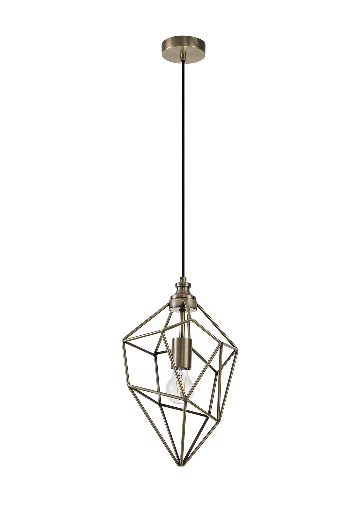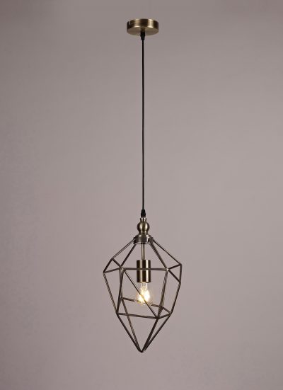 The open areas of the Rawson single pendants form an uninhibited ambient distribution. Numerous different irregular shapes form the metal framework in black nickel or antique brass producing an overall acorn shape with distinctive narrow angled point. Available in three size these E27 pendants are sure to complement a modern edgy setting.