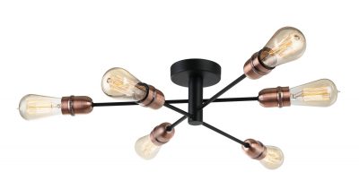 Spark I is a super range which delivers a contemporary industrial look. This matt black and brushed copper range really stands out when matched with decorative vintage style light bulbs which really completes the look. Also available in this best selling range is a 3 light semi flush ceiling light and single wall light. You are currently viewing the Spark I 6 Light Semi Flush Matt Black & Brushed Copper