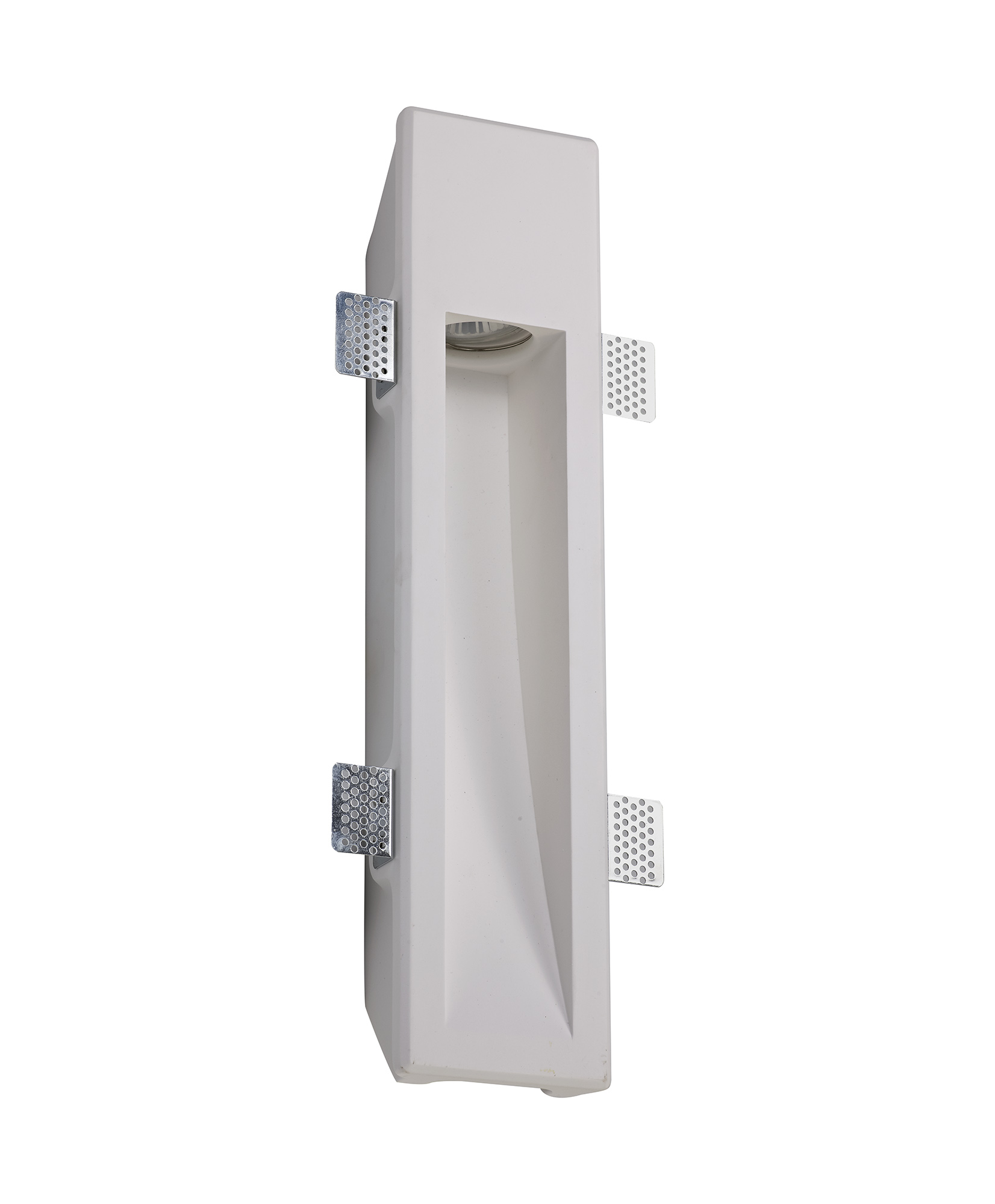 Strafe is a selection of downlight, wall lamps and one single pendant that have been specified for use in both industrial and domestic settings. The most highly appealing feature of this collection is the white gypsum finish which is paintable making the fixtures adaptable to specific needs and taste. The stepped downlights are available in round or square but the wall lights offer the most varied options. A rectangular recessed GU10 wall lamp is available in three size options while the LED wall lamp is a unique uplighter with integral 3000K light. There is also an arched rectangular wall lamp that takes a G9 lamp.