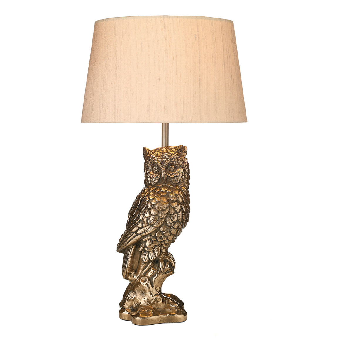A charming table lamp cast into an owl figure in a bronze finish, made in the UK. Base only, shade can be ordered separately. Operated by an in-line rocker switch.