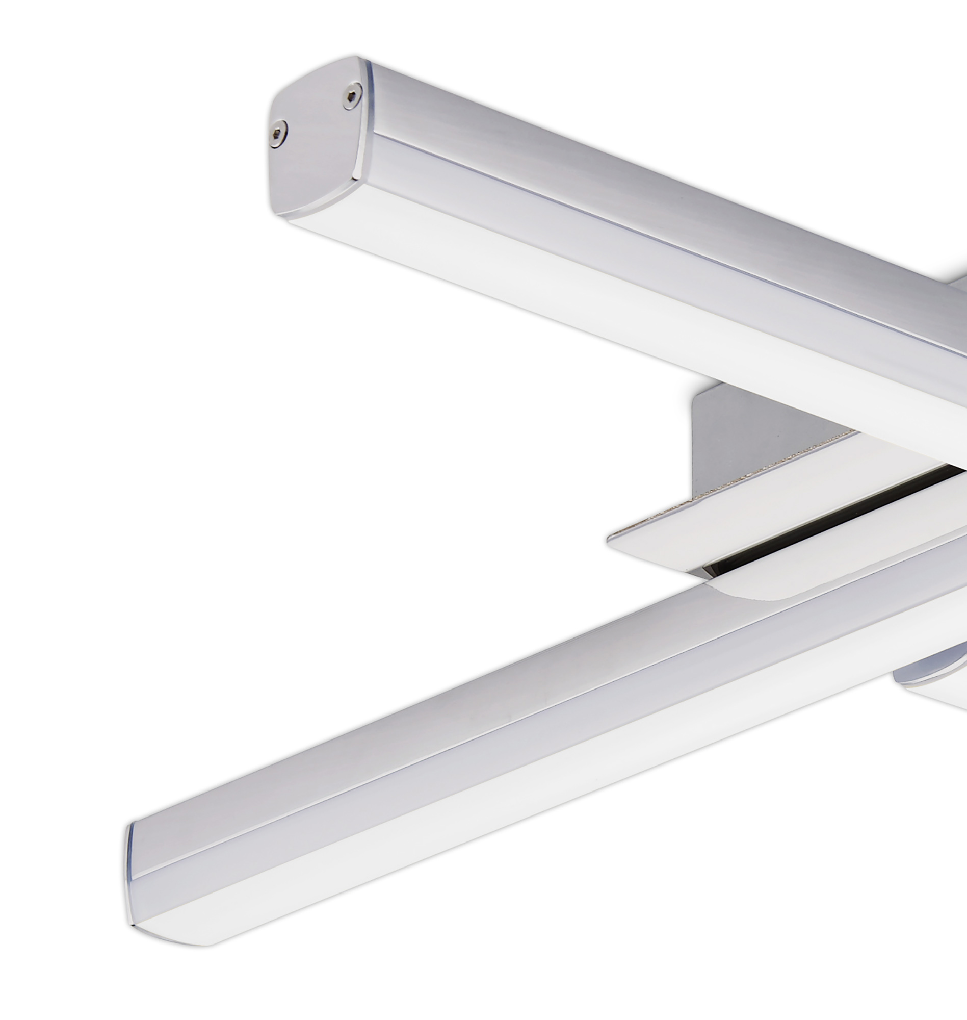 Available in three different sizes, the Torque wall lights are sleek and modern in design with an ambient light distribution being emitted from the integral 4000K LED’s. The polished chrome framework coupled with the opal white rectangular diffusers form a reliable IP44 rated range. The LED arms are adjustable offering a rare control of directionality for bathroom lighting perfect for use around mirrors. Torque also offers a flush ceiling light.