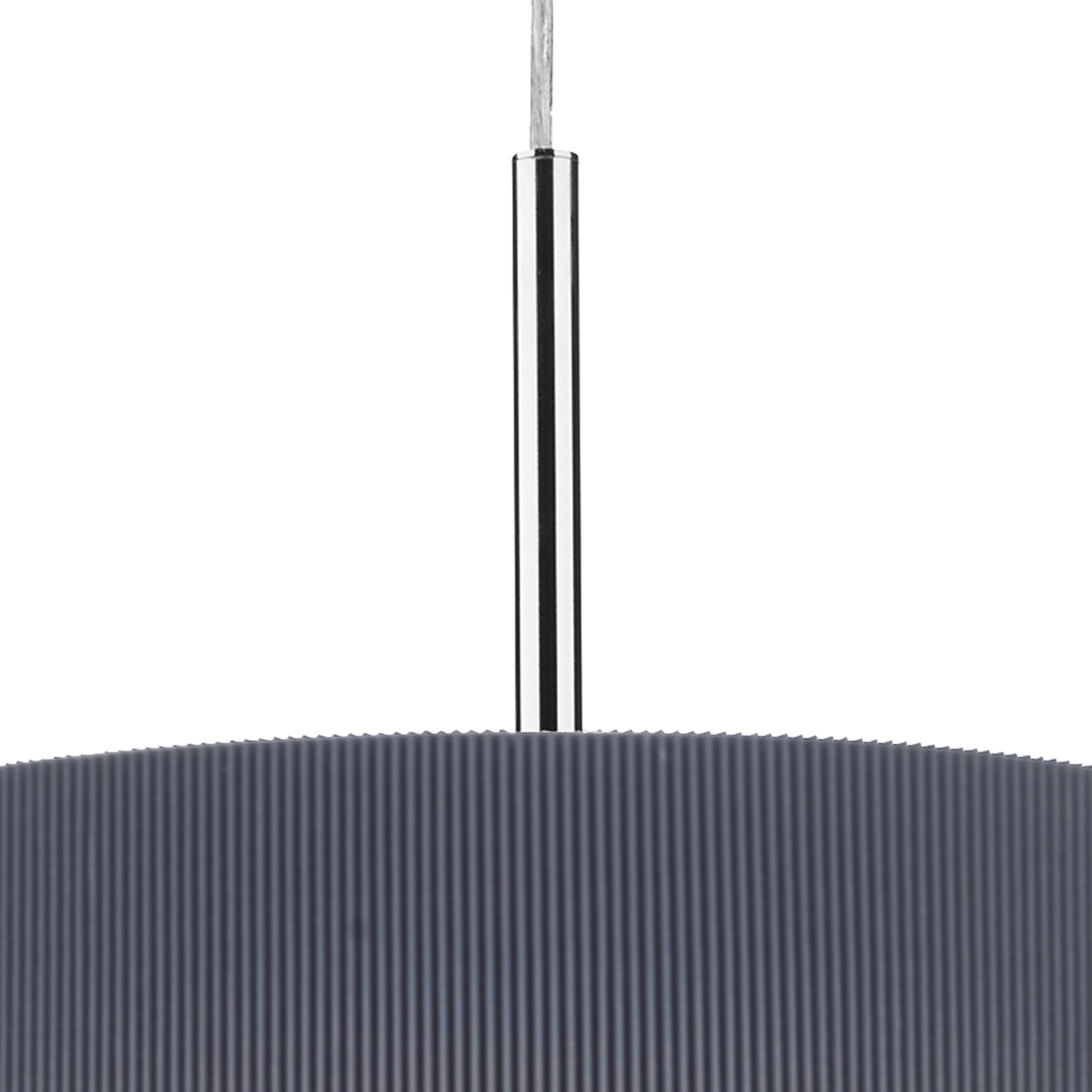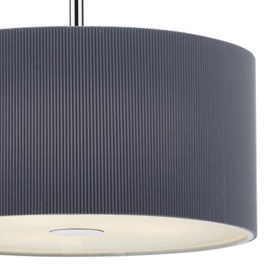 This Zaragoza pendant has a chrome ceiling plate and slender wire suspension, completed by a micro pleat grey shade. The fitting also features a tempered glass diffuser which softens the light. The pendant is suitable for a range of ceiling heights. 250cm of cable is supplied with the fitting and can be height adjusted at the point of installation.
