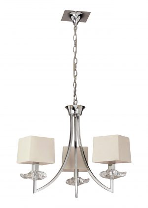 Mantra M0783/CS Akira Pendant 3 Light E14, Polished Chrome With Cream Shades